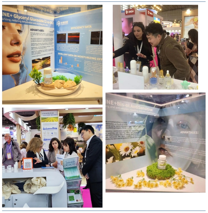 展會期間,杉海創(chuàng)新團隊成員將超分子技術(shù)和自研創(chuàng)新原料展示在來自全球的專業(yè)觀眾面前。現(xiàn)場來往絡(luò)繹不絕,氣氛火熱,與來自不同國家的美妝品牌進行了深入的交流,共同探討全球美妝市場趨勢,期待著進一步的合作。